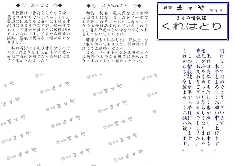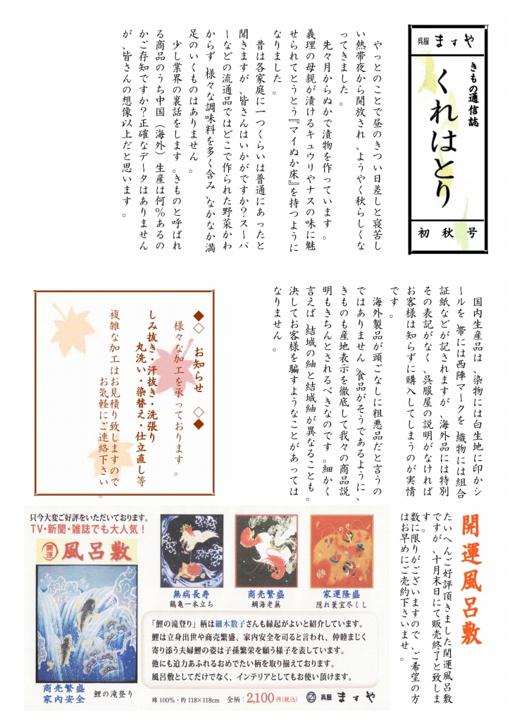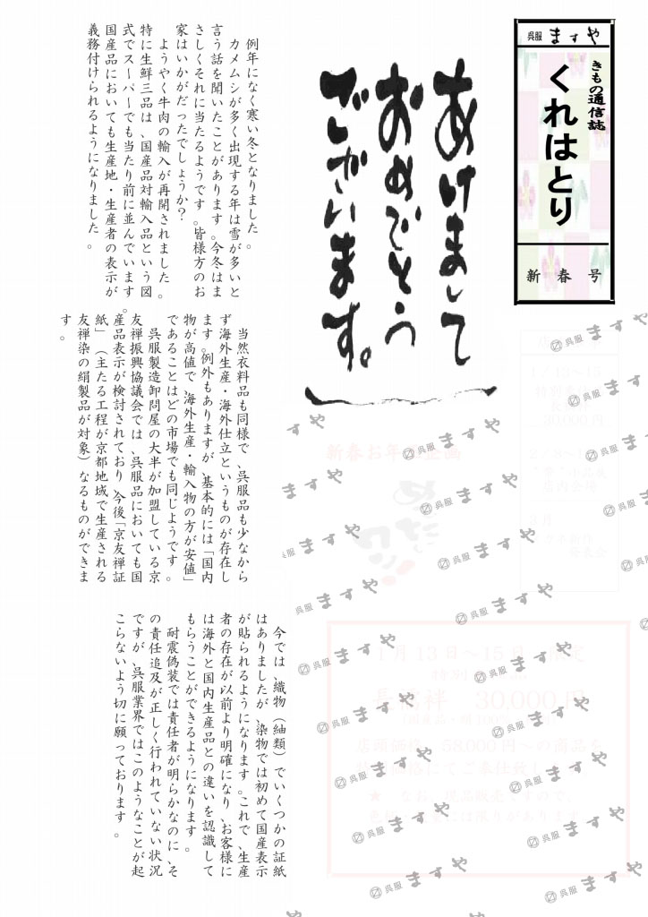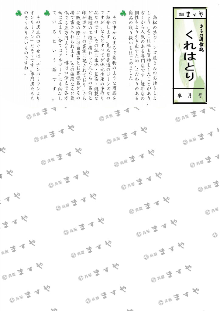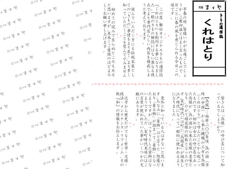 2002年より発刊のますやオリジナル季刊誌「くれはとり」。