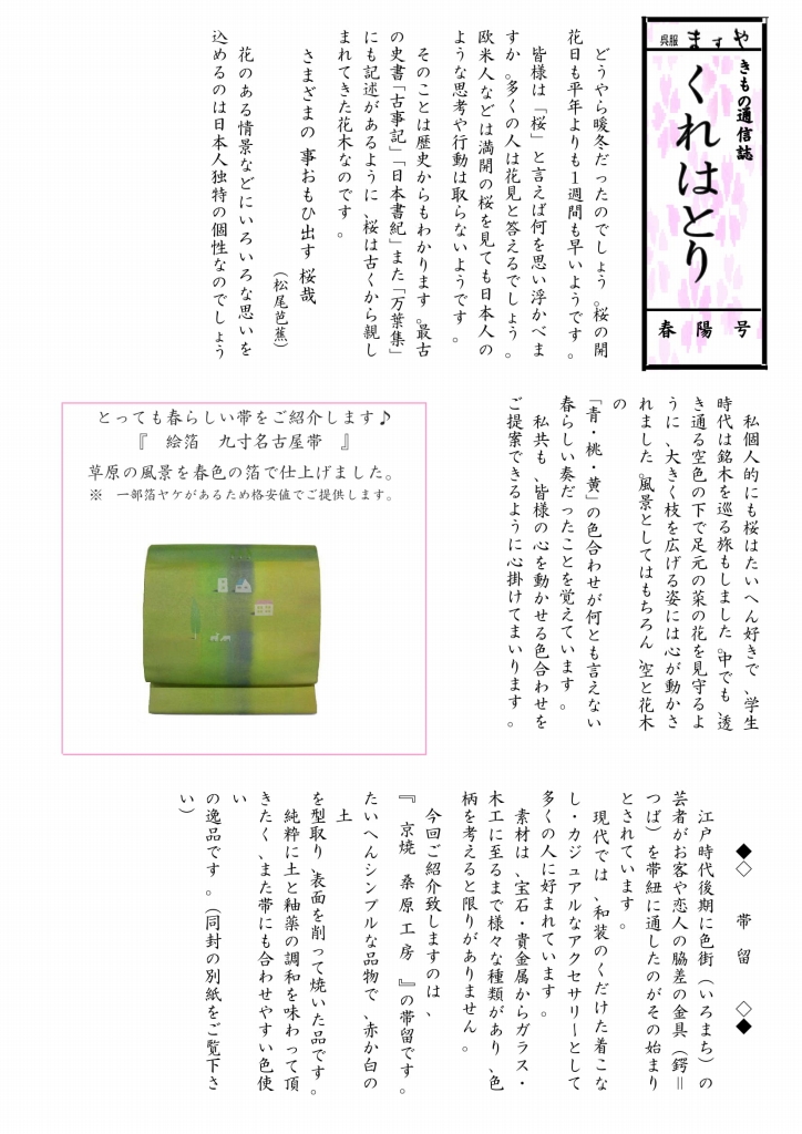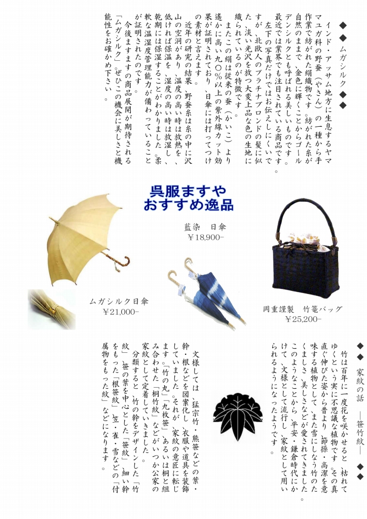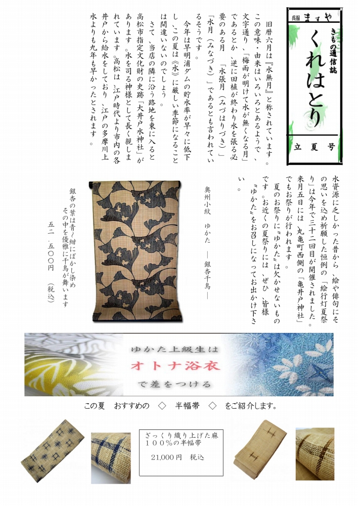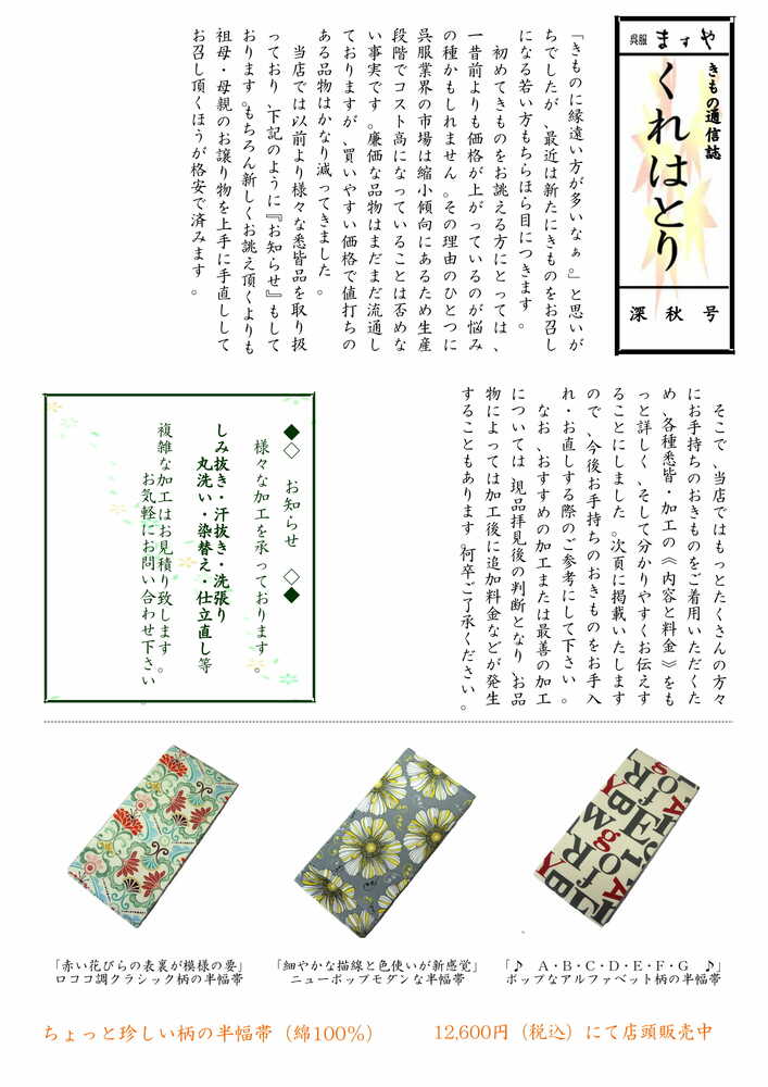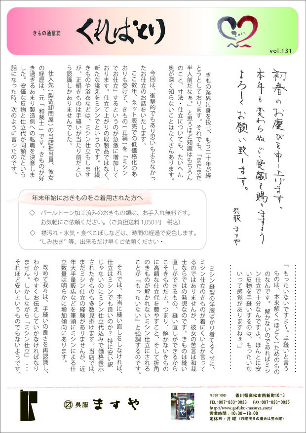 2002年より発刊のますやオリジナル季刊誌「くれはとり」。